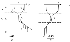 Однако, в неоднородной среде ρ будет существенно зависеть от k. Эта зависимость обусловлено тем, что плотность тока определяется величиной «разноса» питающих электродов АВ и с увеличением АВ эта относительная плотность с глубиной возрастает, поскольку возрастает и глубина проникновения поля в Землю. Сказанное хорошо видно из рассмотрения такого примера ( рис.23 ).