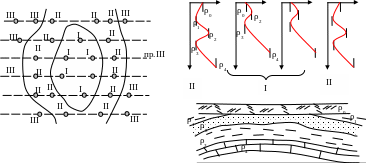Самое замечательное состоит в том, что в ряде случаев ρк может оказаться как угодно близким к истинным значениям ρ1 , ρ2 и т.д. Но это будет показано несколько позже. А пока остановимся на рассмотрении упомянутых модификаций и сделаем это несколько подробнее, чем по ранее представленным методам электроразведки. Но прежде одно замечание, которое должно прояснить читателю, почему и теория методов сопротивлений на постоянном токе и практика их применения разъясняются гораздо обстоятельней, чем это делалось ранее в разделах, посвященных МТЗ и пр.. Дело в том, что эти методы занимают особое место среди других методов электроразведки и геофизики в целом. Во-первых, с методики ВЭЗ и каротажа КС (кажущихся сопротивлений) началась в первой трети двадцатого столетия разведочная геофизика как таковая. Во-вторых, эти методики используются в современной геофизике чаще, чем какой-либо другой метод практически во всех разновидностях полевой геофизики (инженерная, рудная, гидрогеологическая, техническая, археологическая и пр.), за исключением нефтегазовой, хотя история нефтегазовой геофизики тоже ведет свой отсчет именно с этих методик.
