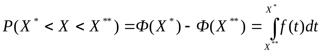 Ймовірність попадання випадкової величини в інтервал Х* - Х** визначається наступним чином: