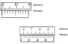 Определить размеры, показанные на данных двух рисунках штангенциркуля.