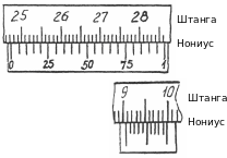 Определить размеры, показанные на данных двух рисунках штангенциркуля.