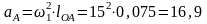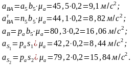 Расчет ускорений начинаем с определения ускорения точки А по формуле: