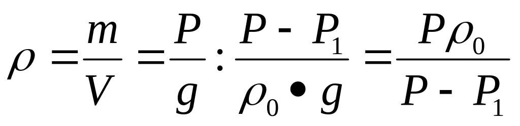 де Р – вага обʼєкту в повітрі, Р1 – вага у воді.