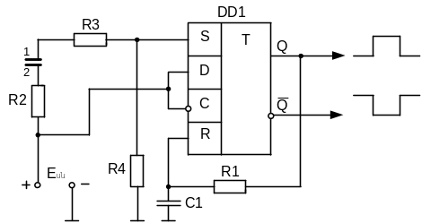 R1 և R2 դիմադրությունները նախատեսված են պաշտպանելու աղավաղումներից, որոնք կարող են առաջանալ տրիգերի մուտքերին