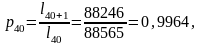 Для особи, вік якої 40 років, імовірність прожити ще один рік становить