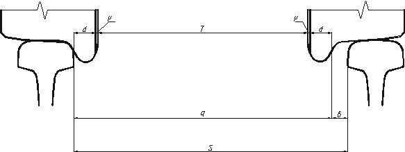Рис.1. Схема для определения зазора δ между рельсовой колеей S и вагонной колеей q На схеме обозначено: