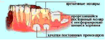 Постоянные зубы закладываются до рождения. Их зачатки возникают на 5 месяце беременности, а формирование их длится в течение 5 лет. Окончательно минерализация постоянных зубов завершается только к 8 годам.