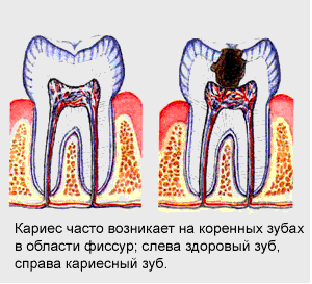Наиболее частые места локализации кариеса - это естественные ямки на зубах человека, чаще на жевательной поверхности, пространство между зубами, область шейки зуба вдоль десневого края.