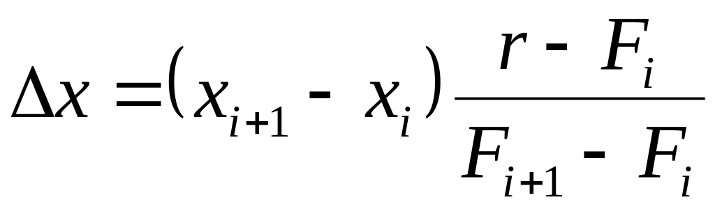 за значенням цього числа визначається інтервал (Fi, Fi+1);