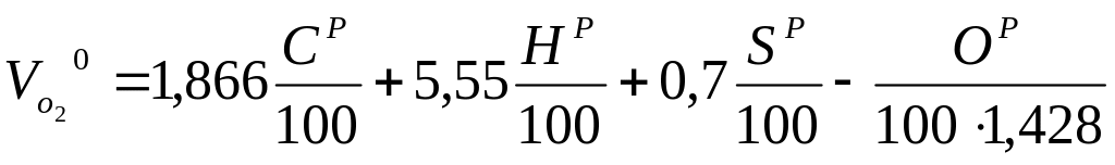 1 кг қатты немесе сұйық отынды жағуға қажет оттегінің теориялық көлемі