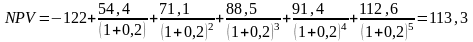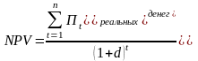 Чистый дисконтированный доход (NPV) - превышение интегральных результатов проекта над интегральными капитальными затратами, приведенными на момент оценки эффективности: