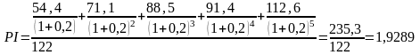 Индекс доходности рассчитывается как: