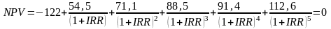 Для проекта IRR будет рассчитываться решением следующего уравнения:
