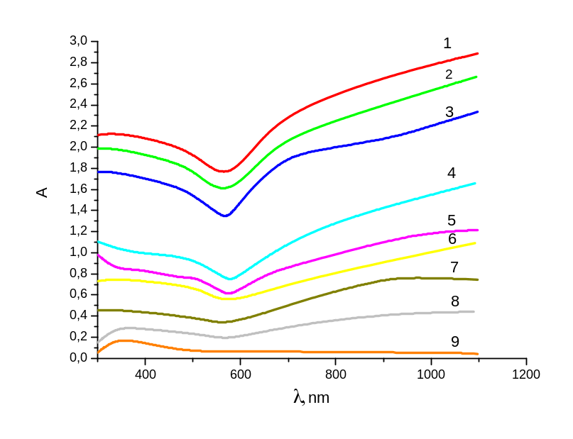нм оптичної щільності зразка формується
