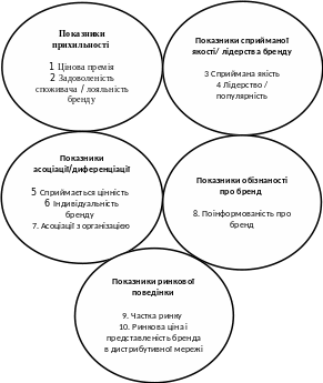Рис. 1.8 «Десятка показників» капіталу бренду [Аакер Д. Создание сильных брендов / Пер. с англ. М.: Издат. дом «Гребенников», 2003.]