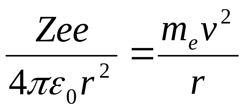 Кулоновская сила взаимодействия между ядром и электроном сообщает электрону центростремительное ускорение. Второй закон Ньютона для электрона, движущегося по окружности под действием кулоновской силы, имеет вид: