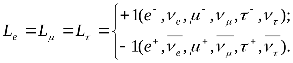 Для всех остальных элементарных частиц лептонные заряды принимаются равными нулю.