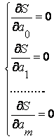 2) Параметры a0 , a1 , … , am будем находить из условия минимума функции S.