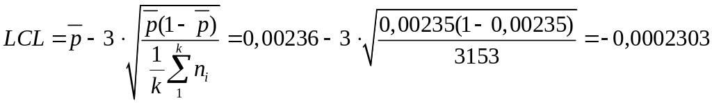 Так, как LCL<0, LCL на p-карту не наносим.