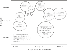 Примітка. Розміри кола приблизно відбивають частку ринку, що обслуговується окремою стратегічною групою.