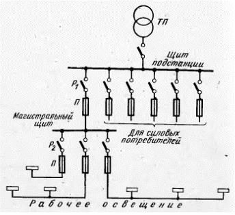 Электр қабылдағыштар цех ішінде қосалқы станциямен тарату құрылғыларына қорғаныстың, қосқыш аппараттар арқылы қосылады.