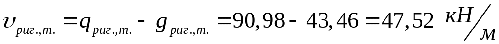 – постійне навантаження від одного перекриття (від плит перекриття та власної ваги ригелів);