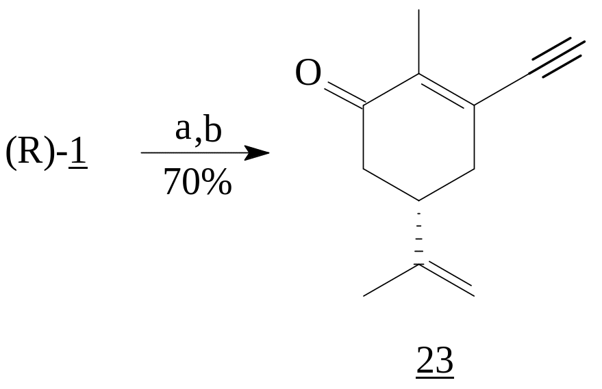 Комплекс ацетиленида лития с этилендиамином приводит к образованию продукта 1,2-присоединению (23) при взаимодействии с (R)- карвоном (1) [6].