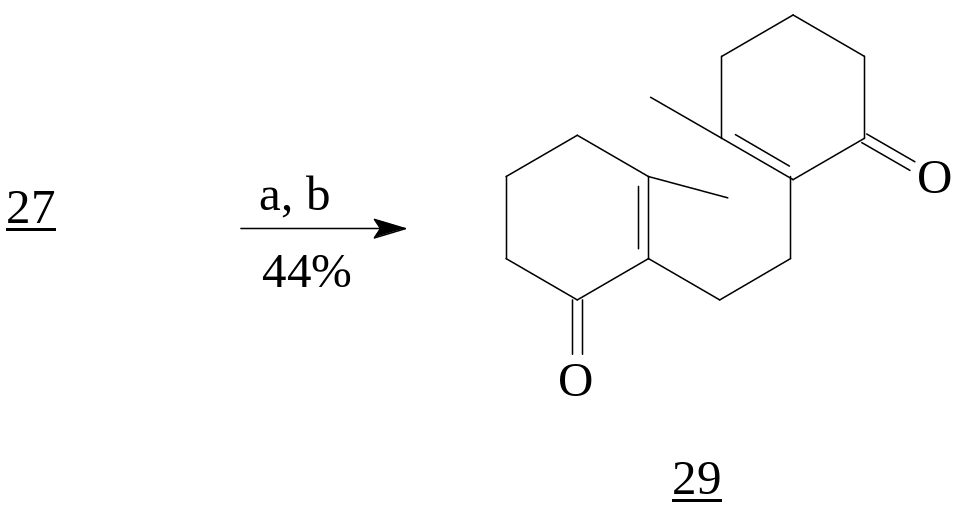 Реагенты: а) PhBr, t-BuLi (2eq.), -78ºC; m-CPBA, DCM, 0ºC; b) BF3·OEt2, DCM, -40ºC; PCC, DCM, 22ºC.