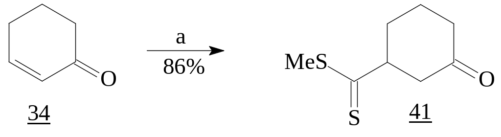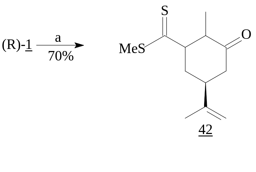 Если обычные RLi-реагенты преимущественно дают продукты 1,2-присоединения, то CH2=C(SMe)SLi, получаемый из метилдитиоацетата, приводит к 5-оксодитиоэфирам - продуктам 1,4-присоединения, используемым в синтезе 6-членных циклов [20]. Соединения же (41) и (42) являются предшественниками бициклов.