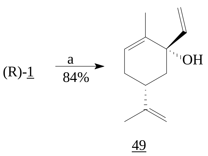Нуклеофильное присоединение винилмагнийбромида к (R)-карвону (1) при температуре -78°C ведет к образованию третичного спирта (49). Присоединение всегда протекает по аксиальному направлению с образованием trans- аддукта как основного изомера [25].