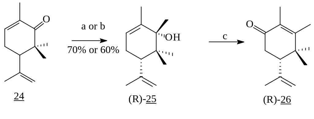 Реагенты: а) MeMgJ, -5°C, Et2O, 3h; b) PCC, CH2Cl2; c) LiAlH4.