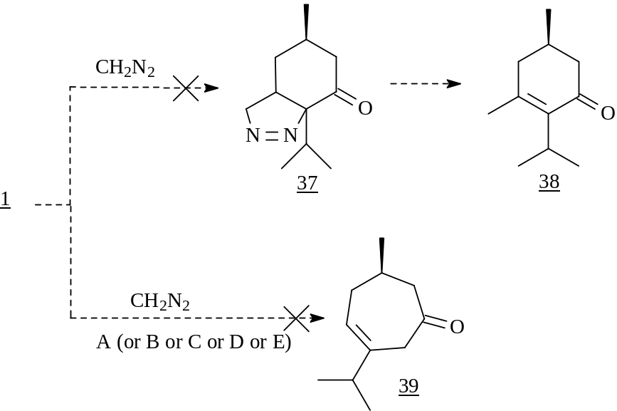 В связи с этим нами было изучено взаимодействие (R)-4-ментенона с диазометаном. Однако при проведении реакции в Et2O и CH2Cl2 был выделен лишь исходный субстрат и наблюдалось образование полиметилена - продукта полимеризации карбена.
