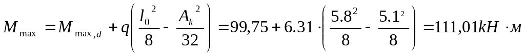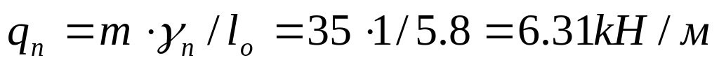Максимальный нормативный изгибающий момент с учетом собственного веса:
