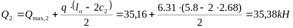 Поперечная сила на расстоянии с2 от опоры с учетом собственного балки веса, равна