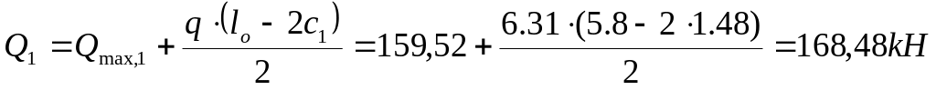 Поперечная сила на расстоянии с1 от опоры, с учетом собственного веса балки, равна