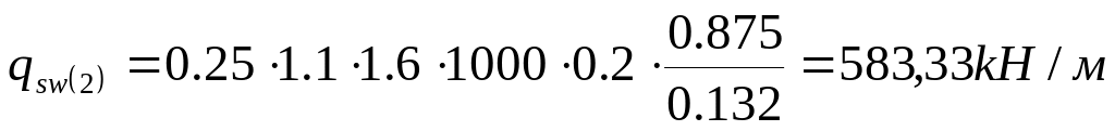 Принимаем максимальное значение qsw= qsw2= 583,33 kH/м.