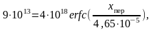 б) Глубина, на которой возникает p-n-переход, определяется из условия, что на данной глубине концентрация акцептора становится равной концентрации диффундирующей примеси: