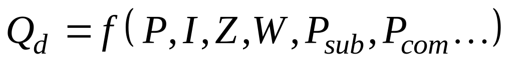 Зависимость величины объема спроса от определяющих его факторов называют функцией спроса. В общем виде она может быть представлена выражением