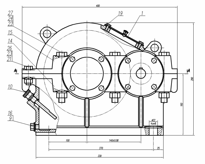 Рис. 24. Разрез по вертикальному редуктору
