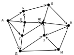 В9.На рисунке – схема дорог, связывающих города А, Б, В, Г, Д, Е, Ж, З, И, К. По каждой дороге можно двигаться только в одном направлении, указанном стрелкой. Сколько существует различных путей из города А в город Ж?