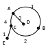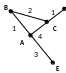 А2. В таблице приведена стоимость перевозки пассажиров между соседними населенными пунктами. Укажите схему, соответствующую таблице.