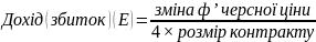 Наприклад, ціна 93,56% означає, що цей контракт прив'язаний до річної відсоткової ставки по 3-місячних депозитах, яка дорівнює 100 - 93,56 = 6,44%. Якщо на момент закінчення строку контракту відсоткова ставка становила менше 6,44%, то покупець отримає прибуток, якщо вона зросте - збиток. Дохід чи збиток по ф'ючерсному контракту на відсоткові ставки по 3-місячних інструментах буде пропорційним зміні ф'ючерсної ціни, поділеній на 4 (оскільки процентні ставки по 3-місячних інструментах котируються на річній основі). Загальний дохід чи збиток (total gain or loss) no контракту визначається за формулою: