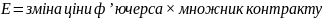 Грошова вартість ф'ючерсного контракту на ринковий індекс визначається як добуток ф'ючерсної ціни на множник ф'ючерсного контракту (futures contract multiple), причому множник виражається в грошових одиницях, а ф'ючерсна ціна, як і сам індекс, є безрозмірною величиною. Дохід (збиток) від ф'ючерсів на біржові індекси визначається за формулою:
