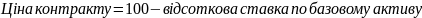 Метод котирування для ф᾽ючерских контрактів на процентні ставки практично однаковий в усіх країнах і досить складний. Ціна ф'ючерсних контрактів на процентні ставки по короткострокових інструментах котирується з дисконтом від 100: