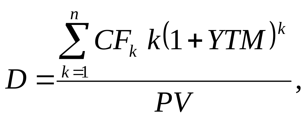 де D – показник дюрації – середньозваженого строку погашення цінного паперу;