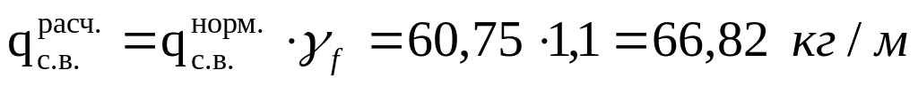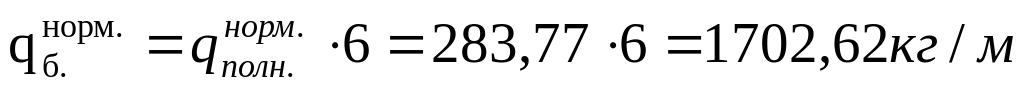 Нормативная нагрузка. Для определения нагрузок умножаем полную нормативную и расчетную на 1м2 нагрузки на 6 м.