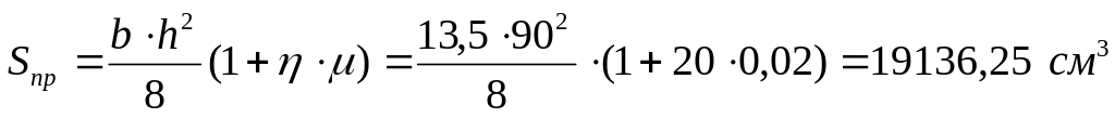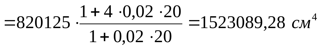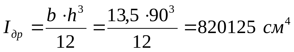 Приведенный к древесине момент инерции армированной балки прямоугольного сечения при двухрядной арматуре: