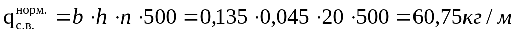 Нагрузку от собственного веса получаем умножением геометрических размеров на удельный вес сосны(500 кг/м3)
