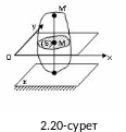 Егер қатты дененің барлық нүктелері қандайда бір қозғал-майтын жазықтыққа параллель қозғалатын болса, онда дененің мұндай қозғалысын жазық – параллель қозғалыс дейміз (2.20-сурет). Қозғалмайтын жазықтық-ты (ж)-деп белгілейік. Дененің О нүктесі арқылы (ж) жазық-тығына параллель етіп (ж) жазықтығы дененің (S) қимасын береді.