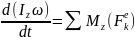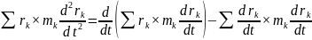 Жүйенің ішкі күштерінің қасиеті бойынша ішкі күштердің бас моменті әр уақытта нолге тең болады. Сондықтан да теңдіктің оң жағындағы екінші қосындысы нолге тең: